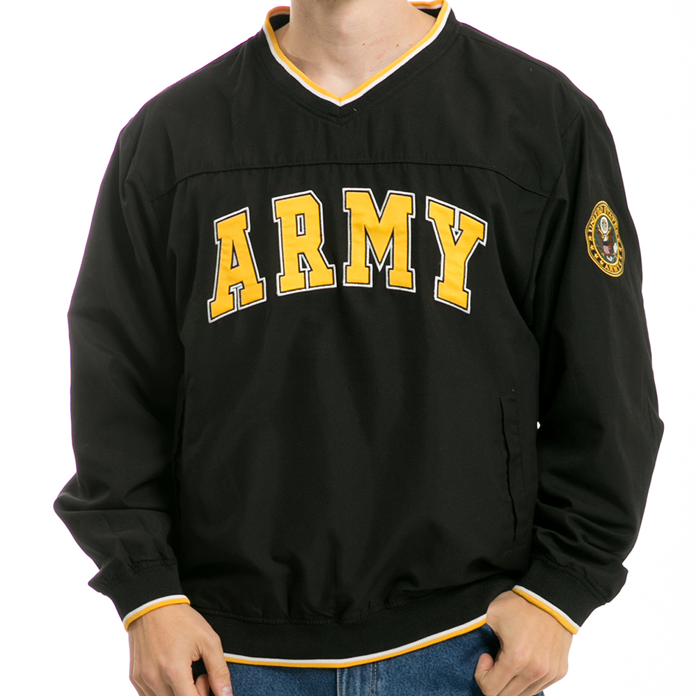 The #military inspired microfiber #pullover is soft, smooth, and keeps the wearer dry while absorbing heat & cold. Features military text and seal across the chest and arm. Elastic lining runs along the wrist, neck, and waist areas to ensure a comfortable fit. Available in Army, Navy, Marines, and Air Force.