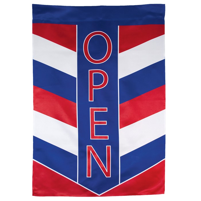 Flag-Works has brought in a New Open Banner. House size 28″ x 40″. Readable on both sides, Permanently Dyed, Vivid Color, Weather Resistant, Fade and Mildew Resistant and Produced in the USA. We have it available in Garden size as well, 12 1/2″ x 18″. Order yours on line or come into the retail store